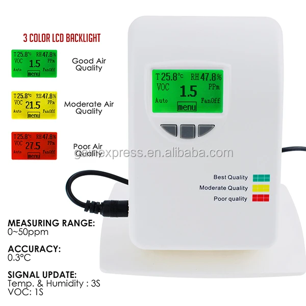 - Hiển thị và độ phân giải VOC: 0,1ppm