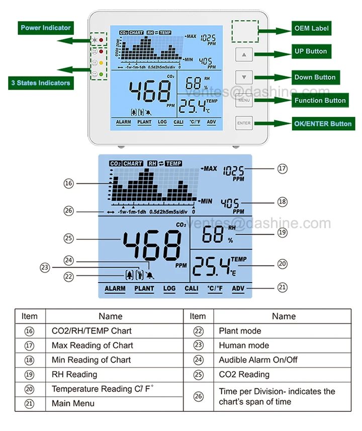 Ba LCD đồng thời hiển thị CO2, nhiệt độ và độ ẩm